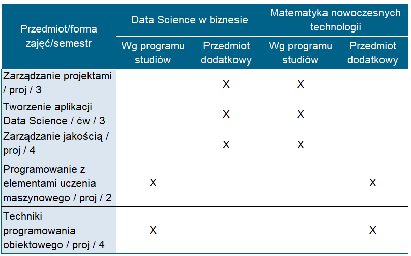 Matematyka nowoczesnych technologii (sem. 4) i Data Science w biznesie (sem. 2)