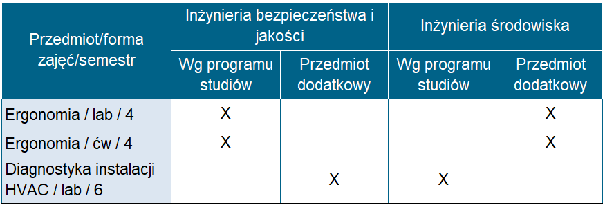 Inżynieria bezpieczeństwa i jakości (sem. 4) oraz Inżynieria środowiska (sem. 6.)