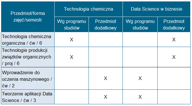 Technologia chemiczna (sem. 6) i Data Science w biznesie (sem. 2)