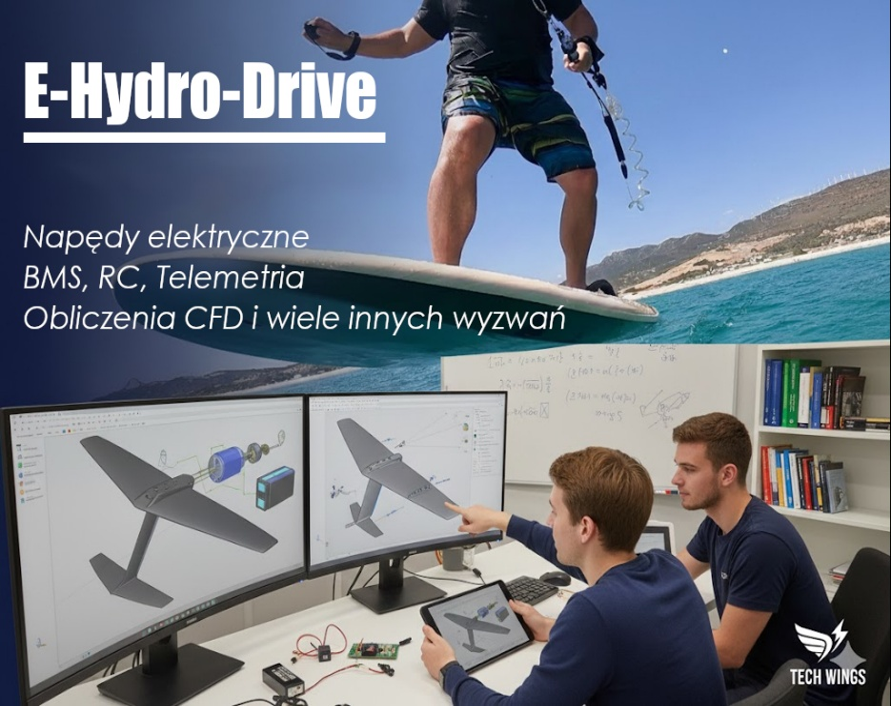 Interesujesz się napędem elektrycznym oraz zagadnieniami mechaniki płynów? Chcesz się dowiedzieć czym jest i jak zbudować E-foil? Podejmij wyzwanie w projekcie E-Hydro-Drive!